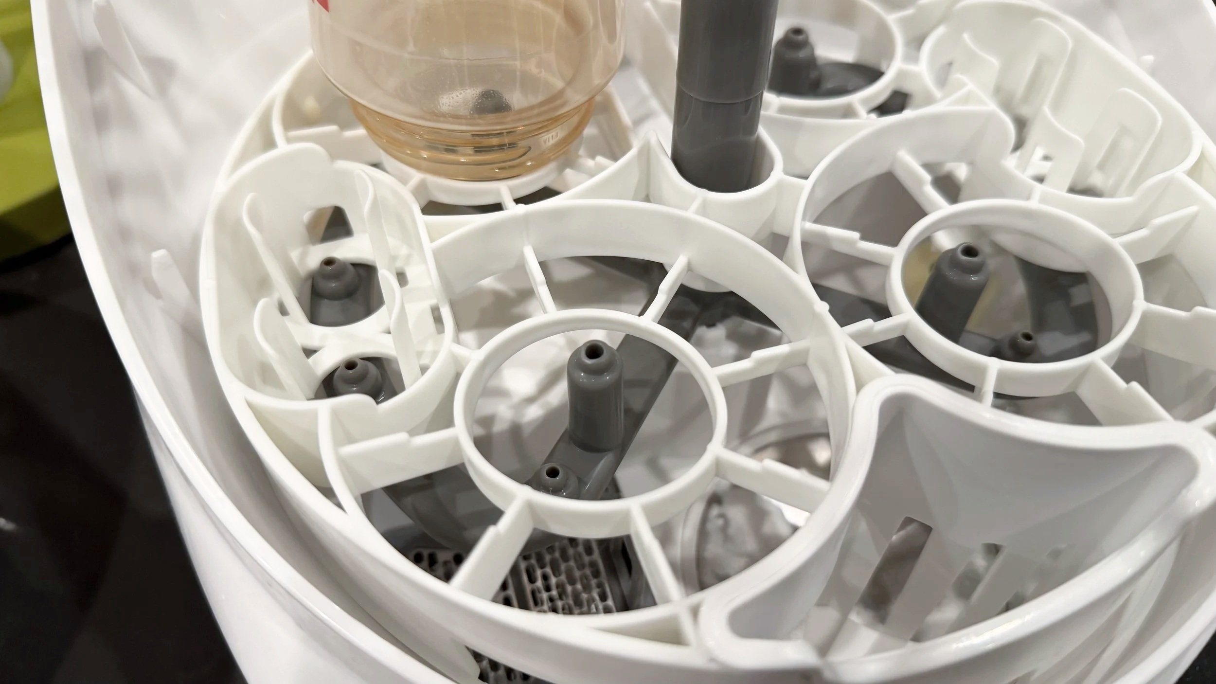 Likewise, I’d see a little bit of white residue dissolve left over from the detergent tablet, but that’s easily wipeable and something I’ve been accustomed to seeing from our dishwasher too. Not only does the Brezza use water streams to spray the bottles clean, it also utilizes natural steam to supposedly kill 99.9% of germs. I don’t have the means to test that claim, but Baby Brezza claims it's clinically proven.
