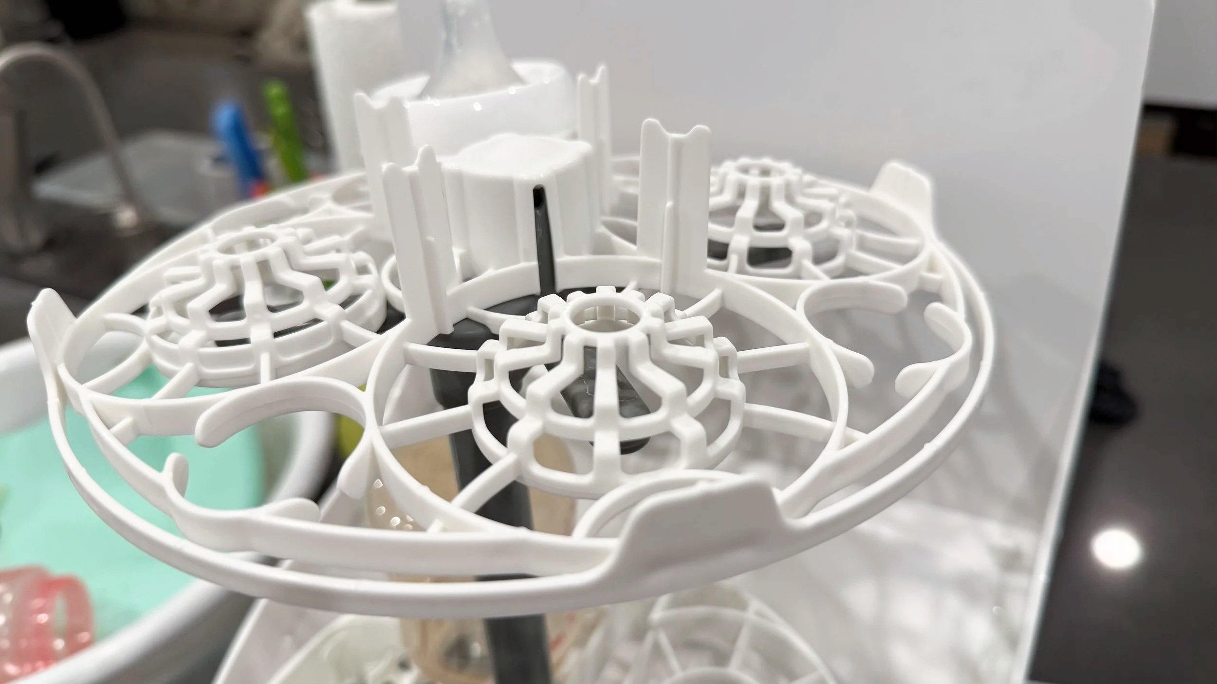 It works like a dishwasher would. The Washer Pro has a capacity for up to four bottles as itemized by a plastic holder that segments where each bottle should be placed. It’s neatly organized into two levels with the bigger items having more height space on the lower rack, and smaller items like bottle nipples and pacifiers. While the capacity does suffice, it would have been nice to be able to load a few more items in here. With that said, while the Washer Pro isn’t small by any means, it’s still what I’d consider storable in its current build and that’s a pro for me.
