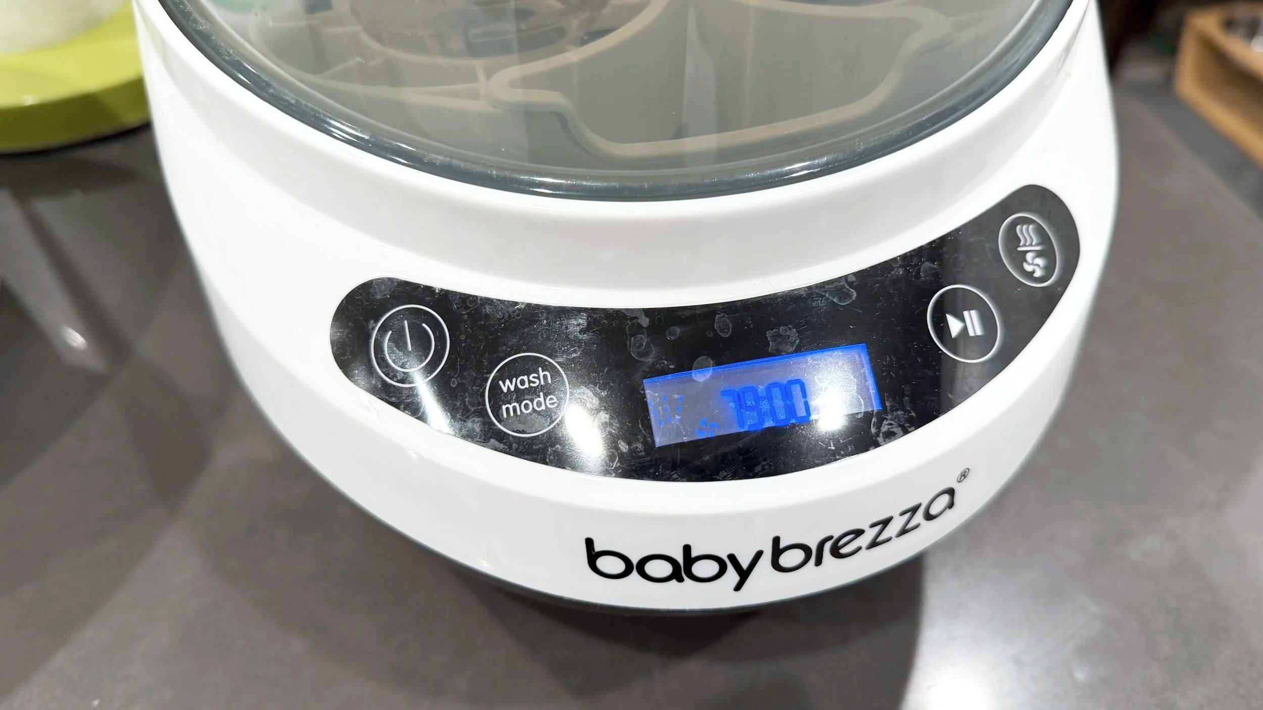 It takes 19 minutes for washing, 10 minutes to sterilize, and 60 minutes to dry the items. After the cycle has completed, the dirty water tank needs to be emptied out and the clean water tank needs to be refilled up to the line for the next batch of bottles. The entire machine doesn’t need to be near a sink, nor does it need to be hooked up to a hose. It only takes a single power cord to a wall outlet and it's off to the cleaners with those baby bottles. This makes the Brezza surprisingly mobile as it has little built-in wheels on the bottom to swivel and roll across a counter top easily.