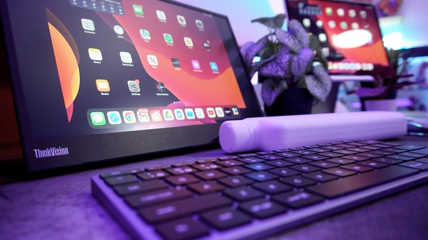 My favorite feature that makes this display stand out is that it cleverly props up by itself. This monitor doesn’t require an origami case or a kickstand to hold it up. What Lenovo engineered is an extremely thin display, with an equally thin hub area where all the ports reside. There are 2 USB-C ports that flank each side so that you can plug it into a laptop or computer seated in any direction. The hinge rotates for it to lay flat, essentially doubling as the stand for the display in which you can then adjust the viewing angle. This is just an extremely lightweight and durable product that doesn't occupy additional space in my bag when traveling. It’s a perfect companion to take to a classroom.