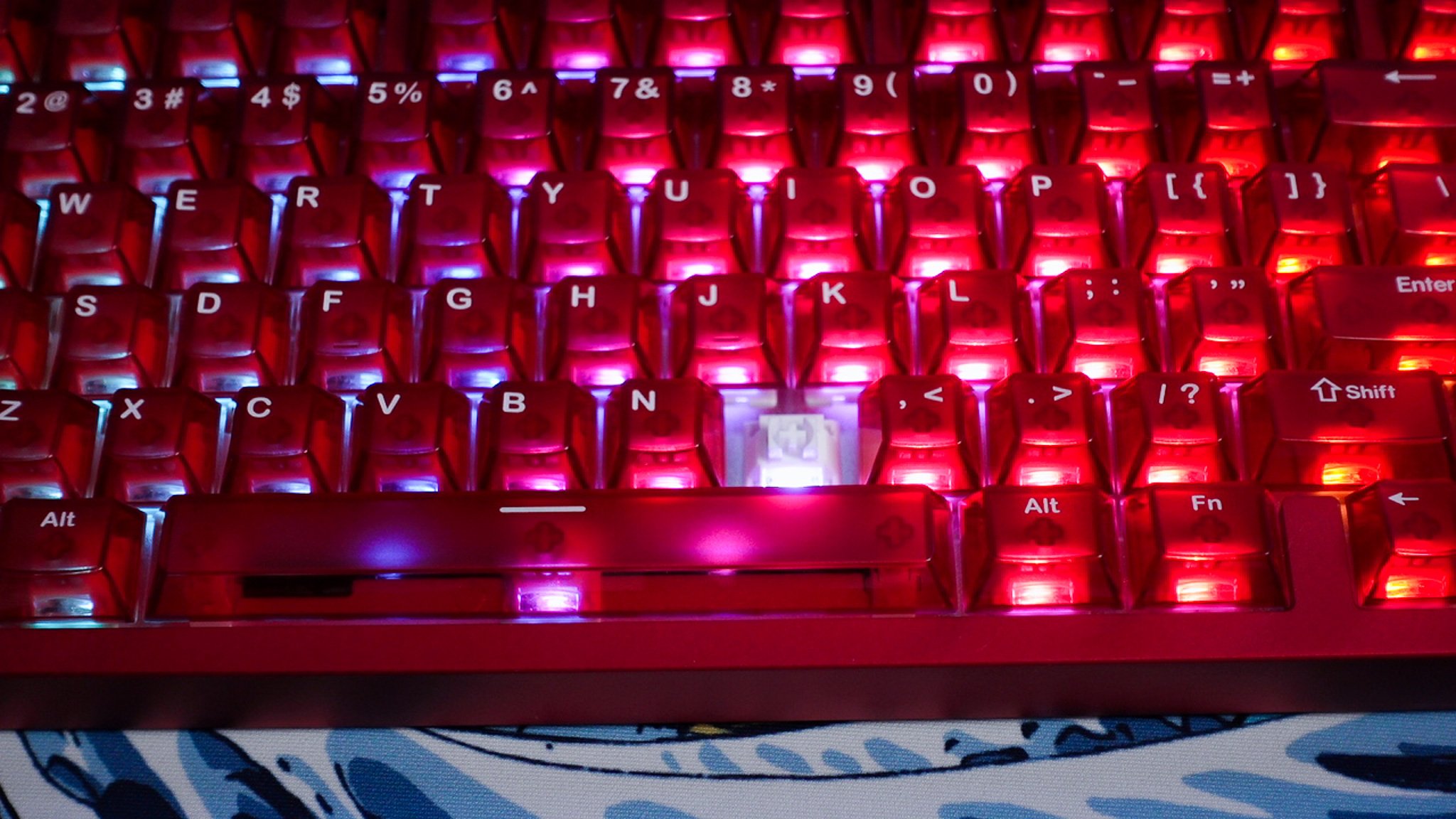 While I like the touch and feel of the transparent polycarbonate keycaps, I didn’t enjoy typing on this keyboard in a dark room. Even though the RGB on each key has a high refresh rate and the colors that emit through the keycaps are vibrant and rich, I still found it extremely difficult to read any of the symbology of the keycaps. This is nothing unique to the MG75 Pro as any translucent designed keyboard typically suffers from the same problem.