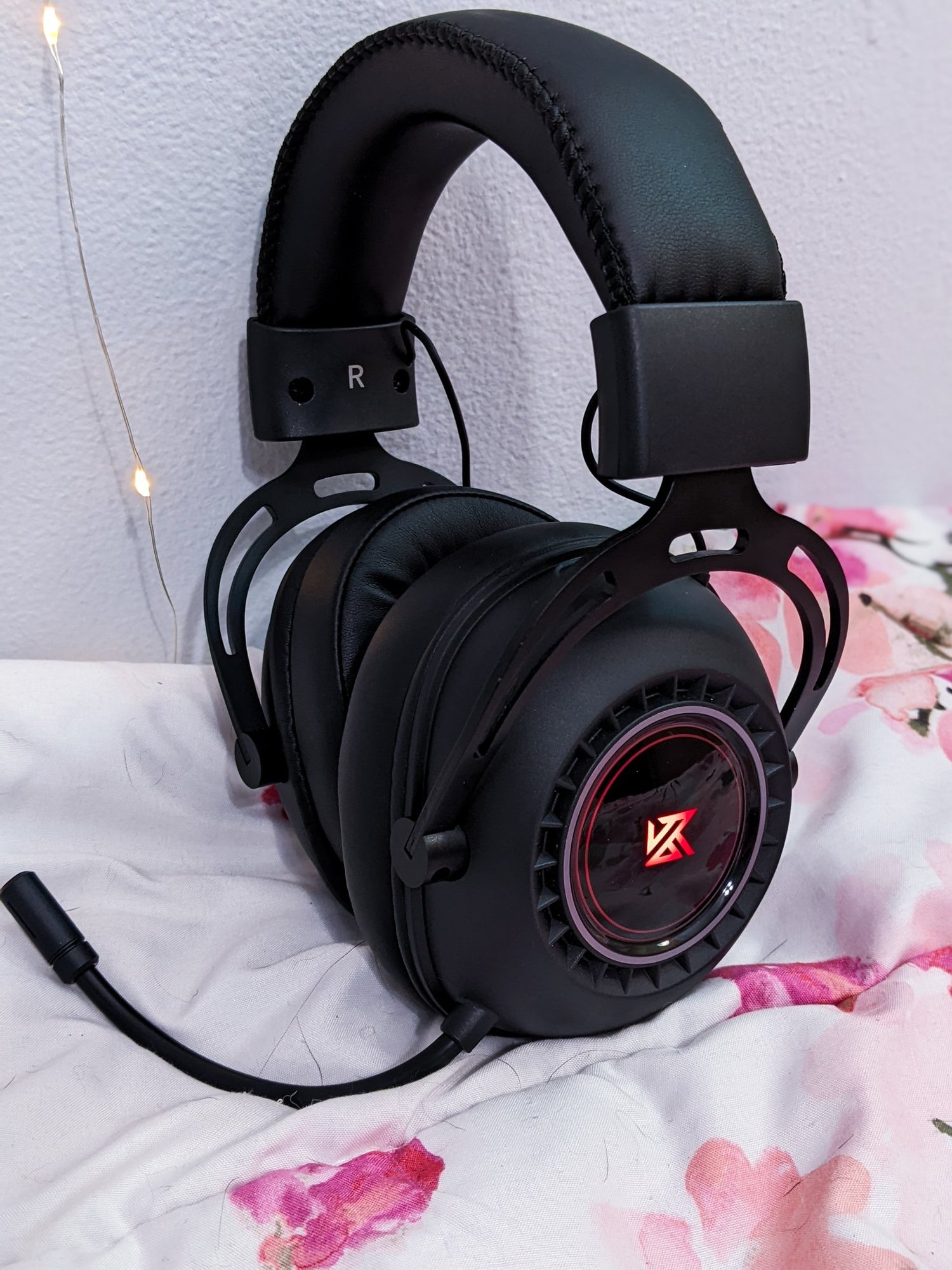 These headphones have a pretty basic look, but I don’t think that’s a bad thing. They’re simply a sleek black color with a logo on each side. That same space where the branding is also houses the RGB for these headphones. The RGB is very simple, just spectrum cycling, and there is no way to customize it. However, I still think the RGB is a nice touch that elevates the overall look of the headset. You can also choose to turn the RGB off if you want to extend the headset’s battery life. Overall, I think this headset looks pretty cool, even if it is a little on the plain side.