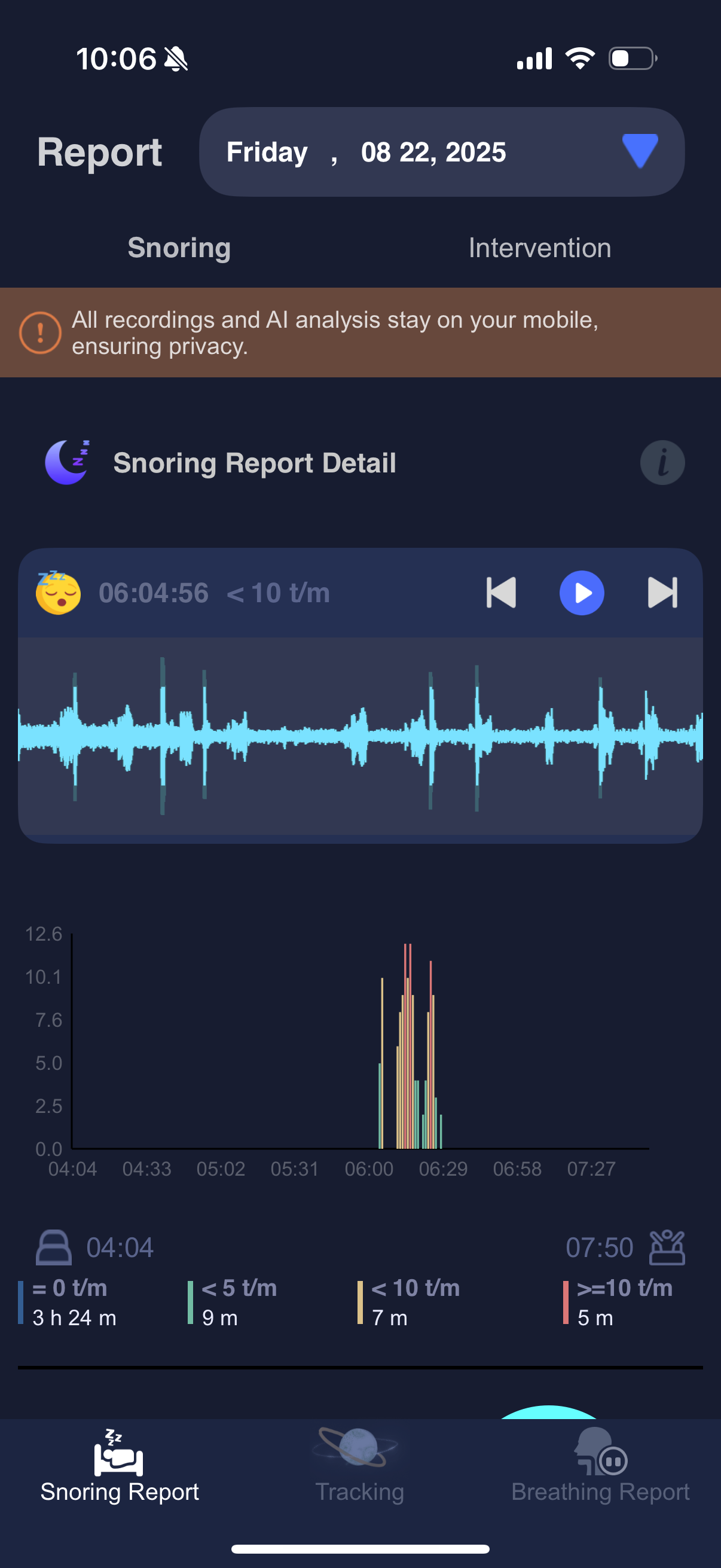 To be fully honest, I wasn’t sold on the app. It connects to the pillow just fine but in terms of usability and features, there’s not a whole lot unless you really want to dive into your snoring stats. I found the app to be buggy at times, telling me that some functions like breathing patterns had to be activated when they already were. You also have to manually start the app tracking each night which I would oftentimes forget to do. The app also uses some listening features through your microphone because I noticed that anytime I had the app running but swapped to a different app to check on my baby monitor, the Nitetronic AI Pillow app would close and stop the snore tracking. The app does show some interesting stats though like average snoring decibels, total snoring minutes and snoring types and intensities. It also saves recordings of snoring for playback although I couldn’t hear any of the clips it supposedly saved. Nitetronic guarantees privacy by keeping audio playback saved directly to your device so sound clips never get saved in the cloud. I’m hopeful Nitetronic will improve the usability of the app and user experience to make the app worth it.