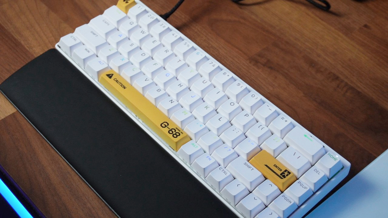 The Chronos 68 isn’t necessarily a unique looking keyboard. It’s built around an aluminum frame that has some good heft behind it. I have the yellow colorway which is a little confusing as the keyboard’s main color scheme is white like the white colorway, but it’s called yellow because the secondary accent keys are yellow. The actual white color’s secondary color scheme is black, but that board is called white because there’s also a third variant called black that’s legitimately just all black. Kind of silly naming convention if you ask me.