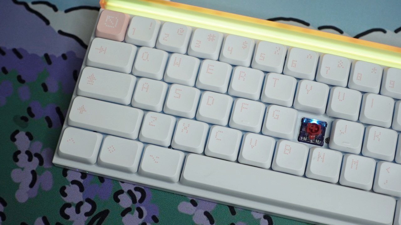 What really caught my eye about the MADE68 AIR was its pastel-inspired color palette and modern and slim design. Our version features a pink lightbox on the rear that highlights color changing RGB and functions as the main source of light for the keyboard. I love how this blush pink color is repeated throughout the rest of the keyboard, both on the keycaps and the bottom frame. The branding is slim to none, and unless you look closely at the back, there’s no other reference to MelGeek. Weighing only 630 grams, it lives up to its name and is incredibly lightweight and would be great for travel or those looking to have a minimalist desk setup.