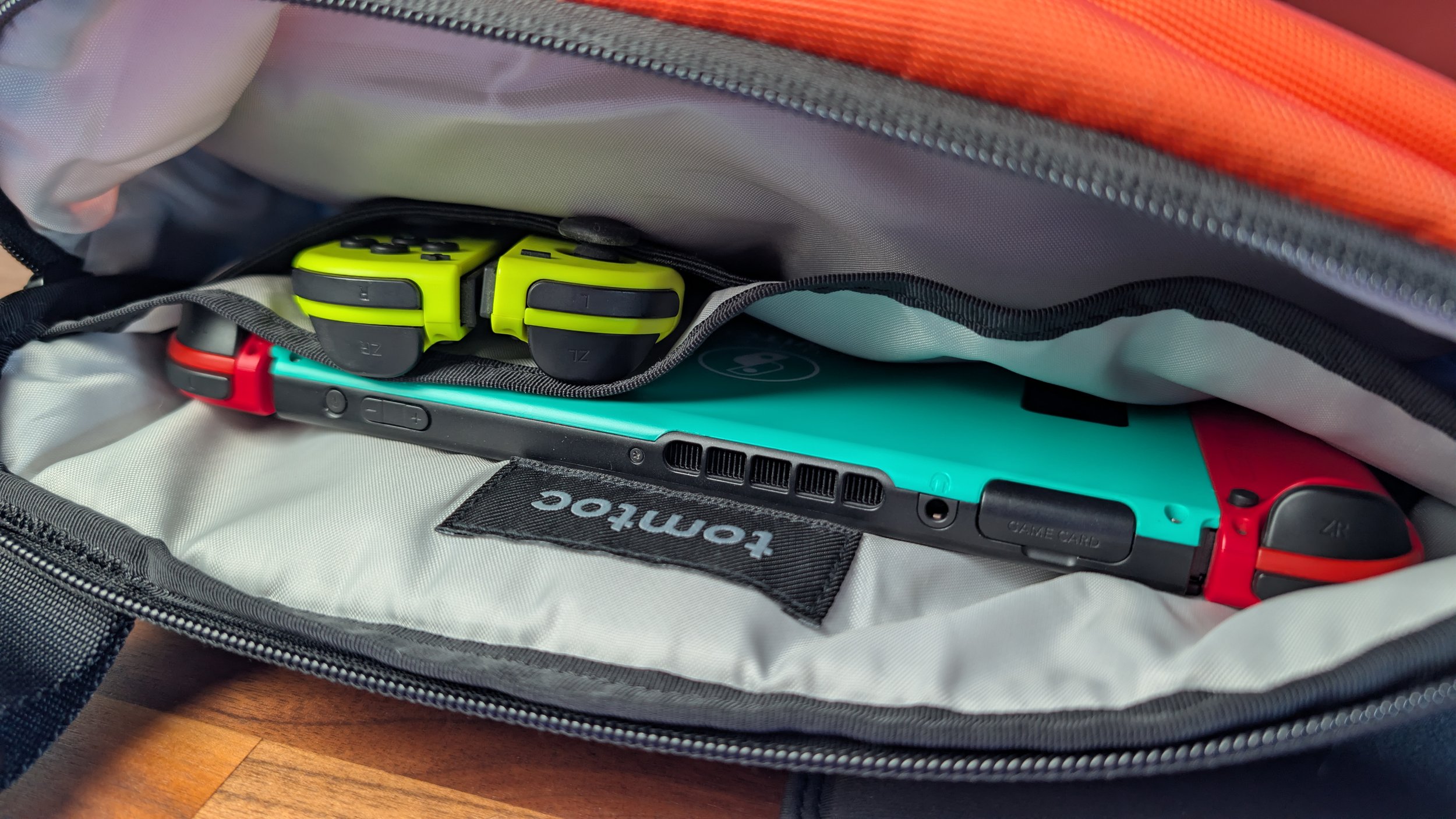 While the bag doesn’t look too big on the outside– thanks to a well organized compartment layout– the Compact EDC holds a bevy of daily items. The main compartment is tailored to house a smaller tablet like the aforementioned iPad Mini. I’ve also seen people specifically purchase this bag to use as a carrier for the Nintendo Switch. This holds both of those things in place quite nicely.