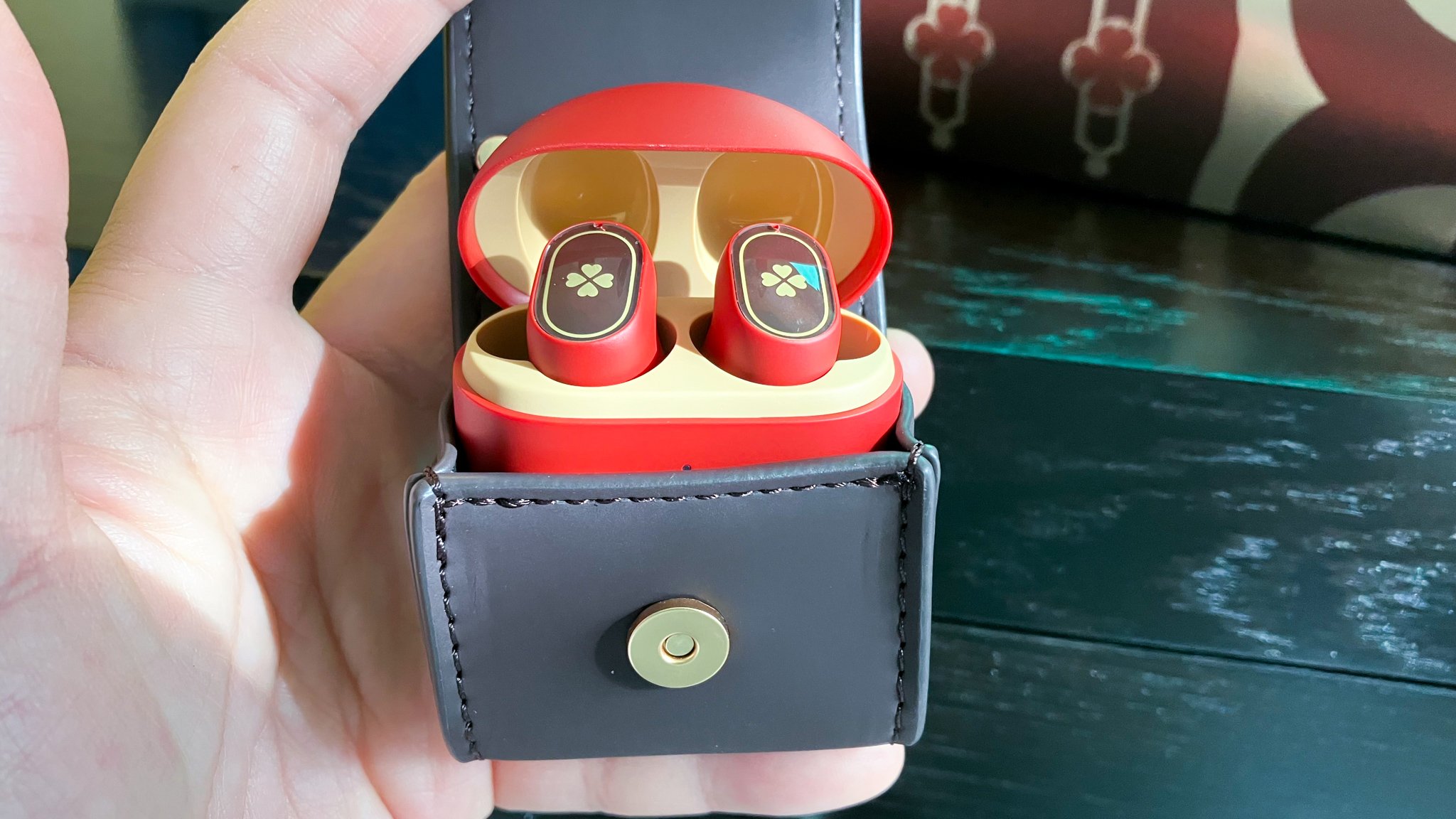 So when we finally stopped gawking at it and opened up the backpack, you can see the same red accent that we saw in the accessories earlier transferred over onto the POCO Buds Pro charging case. Again, there’s a lot of really nice detail on these earbuds down to the gold outlined USB-C port on the bottom of the case and the logo on the back. When you open the earbud case, you’re also welcomed with the same gold and red theme that we’ve been seeing throughout this video so far. Klee’s insignia is smoothly printed on the face of the earbuds for a beautifully contrasted appearance. I love the tone and overall theme POCO decided to go with on this collaboration. When it comes to Genshin Impact, I’d say the signature recognizable characters would be Amber and Klee. Between the two of them, Klee is hands down the logical choice to use as marketing material for the franchise. Incorporating her color scheme and insignia was a good choice by POCO and miHoYo.