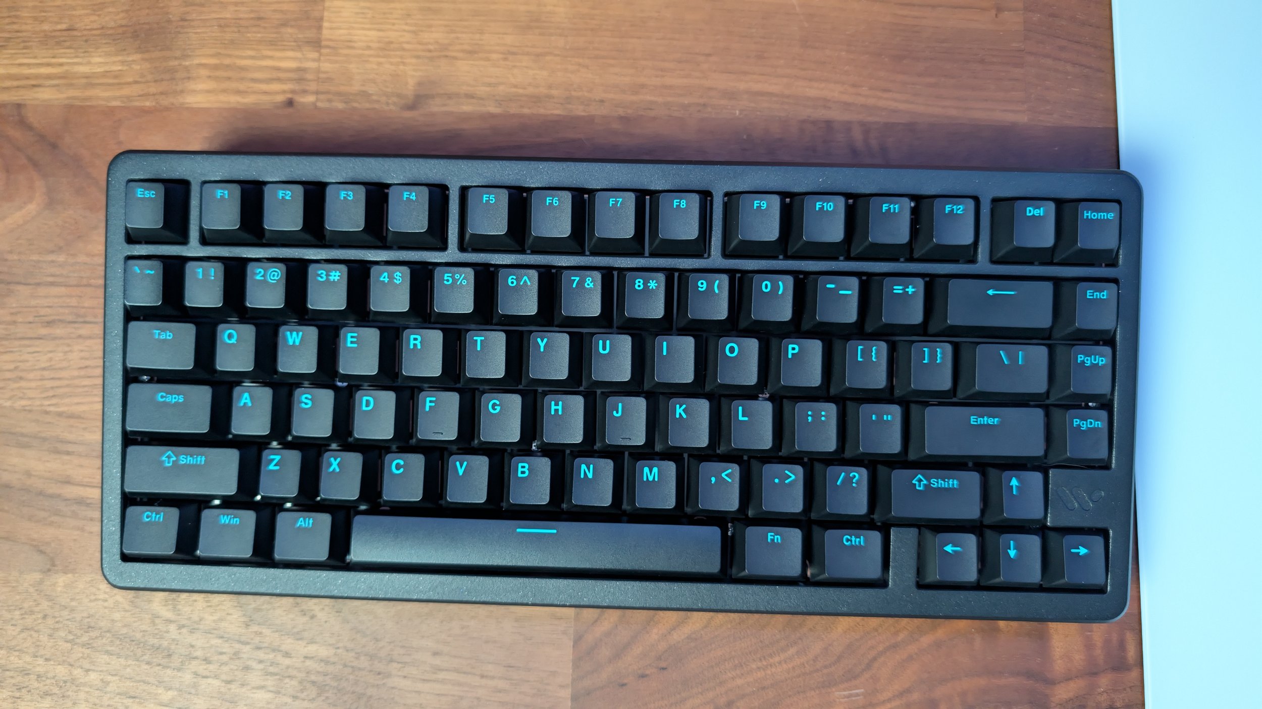 As is with many keyboard names nowadays, the SK75 TMR model name represents the size of the mechanical keyboard and the HE added to listings identifies the Hall Effect nature of the unit. As a 75% board, the SK75 TMR has 81 keys that include a column on the right side for Home, End, PgUp, and PgDown. There isn’t a gap between those additional keys and the main layout, but I do find this compact keyboard to be well spaced out and evenly sorted.